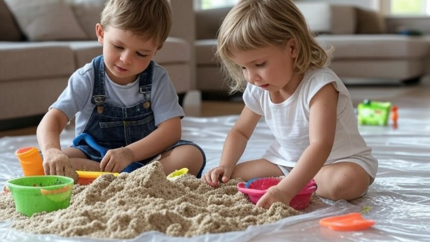 - Texture: La texture idéale du sable magique est celle du sable humide de plage : il se moule facilement sans coller aux mains. Si votre mélange est trop sec, ajoutez un peu d’huile. S’il est trop collant, ajoutez un peu de farine.